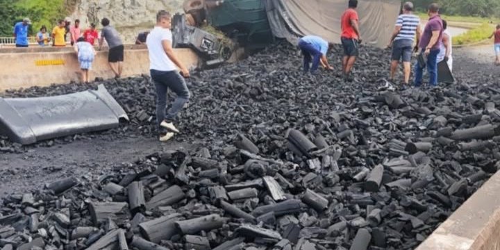 Motorista morreu em acidente de carreta de carvão na Ponte de 600 metros (vídeos)