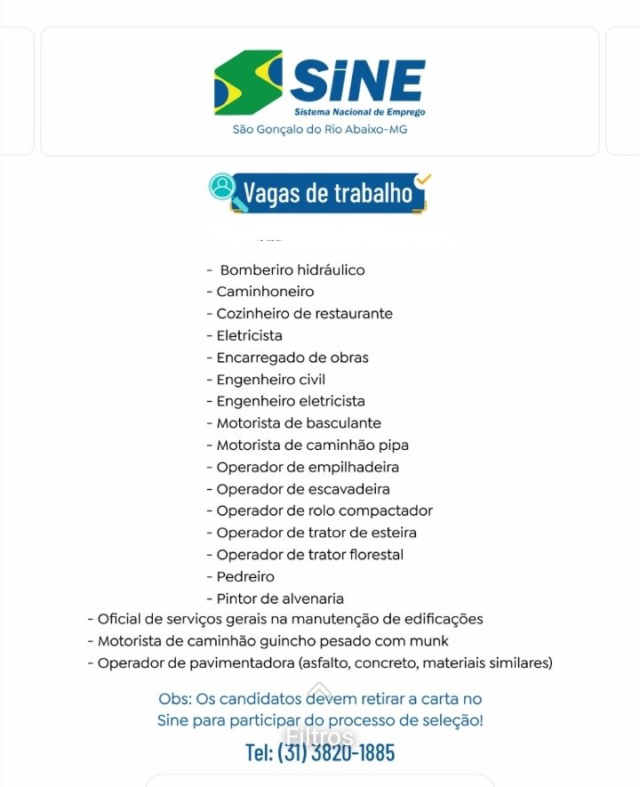 MUITAS VAGAS DE EMPREGO DE EMPREGO NO SINE SÃO GONÇALO DO RIO ABAIXO (#COMPARTILHE)