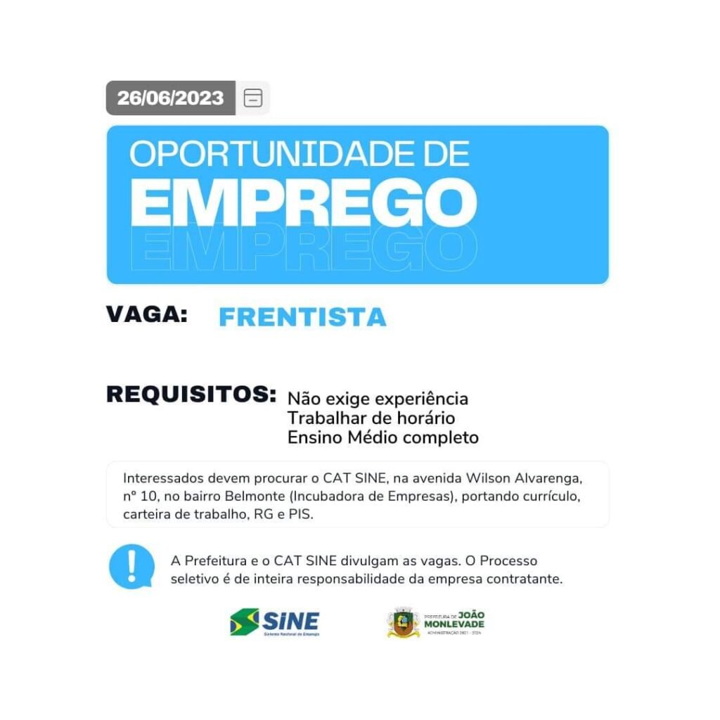 MUITAS VAGAS DE EMPREGO PARA JOÃO MONLEVADE (#COMPARTILHE)