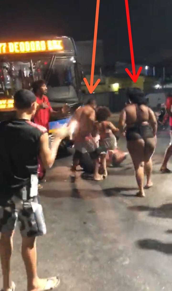 Já em frente ao ponto de ônibus, a mulher bunduda começou a espancar o homem, e com as mãos, não foram tapas, eram socos e o homem ficou bambo.