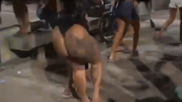 Mas essa mulher entrou na confusão e pegou um homem, agarrou ele e saiu puxando.