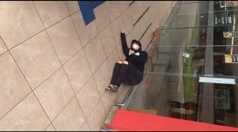 Ainda triste com o ocorrido, Mikaela relata os momentos anteriores ao vídeo que a mostra jogada ao chão. “Comecei a sentir mal dentro da lotérica, com tosse e falta de ar, ai eu saí para o lado de fora, onde há mais ventilação e me escorei na parede do supermercado. Como os sintomas foram piorando, acabei deitando no chão”, explica.