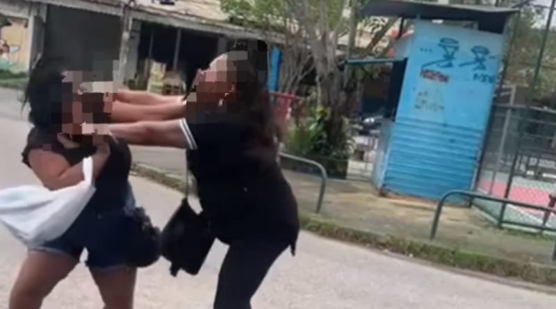 E o pau quebrou entre estas duas mulheres, no meio da rua e é claro com um cinegrafista oculto gravando a cena.