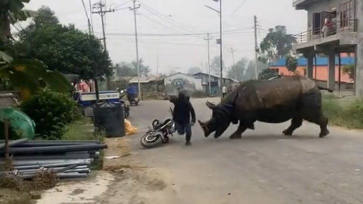 Mundo: rinoceronte ataca homem andando de motocicleta