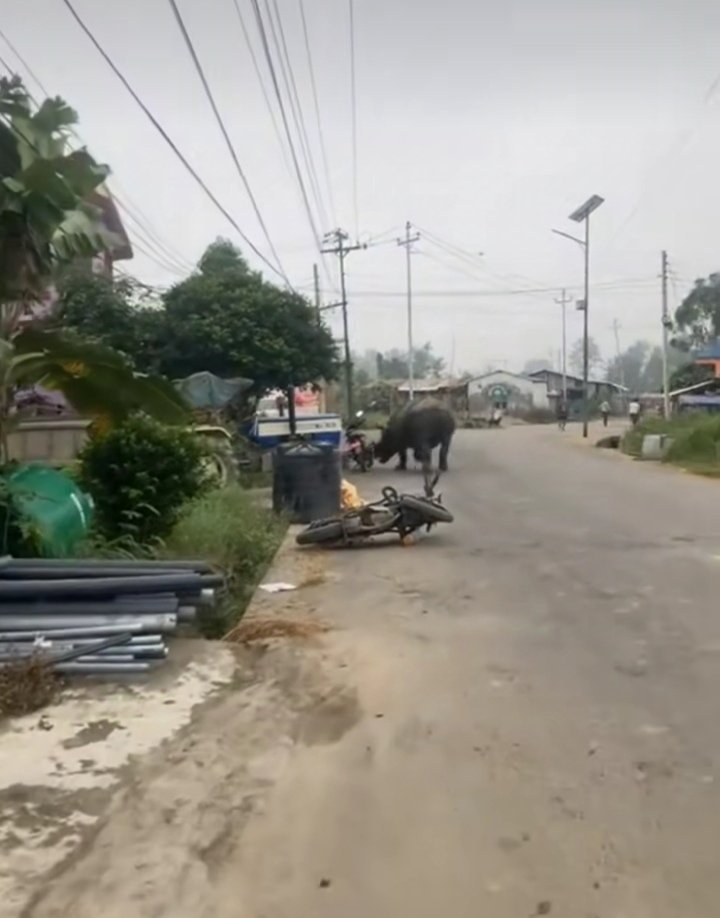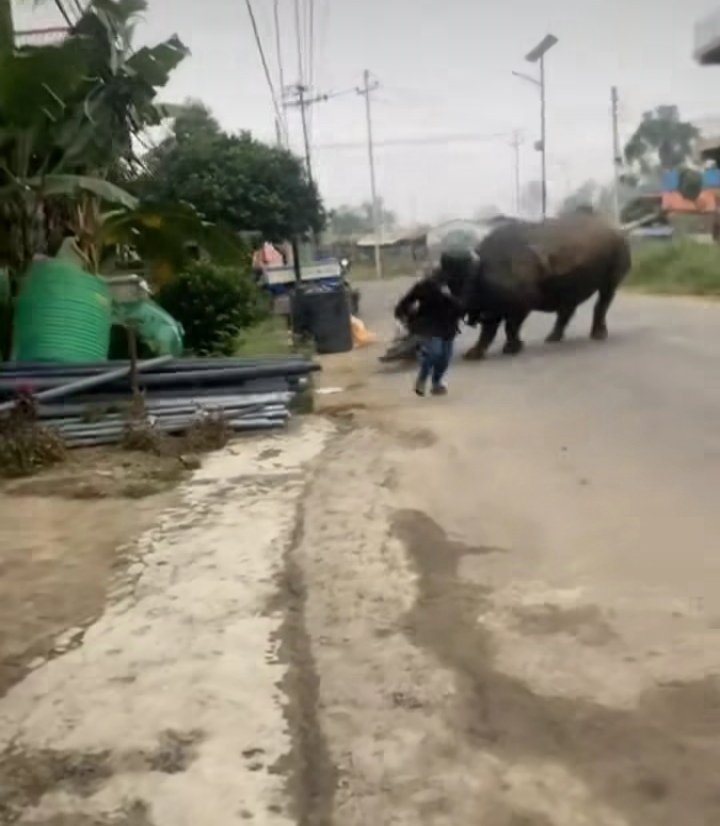 Só mais uma opinião, o rinoceronte estava bravo com as motocicletas, pois atacou uma outra que estava parada à frente.