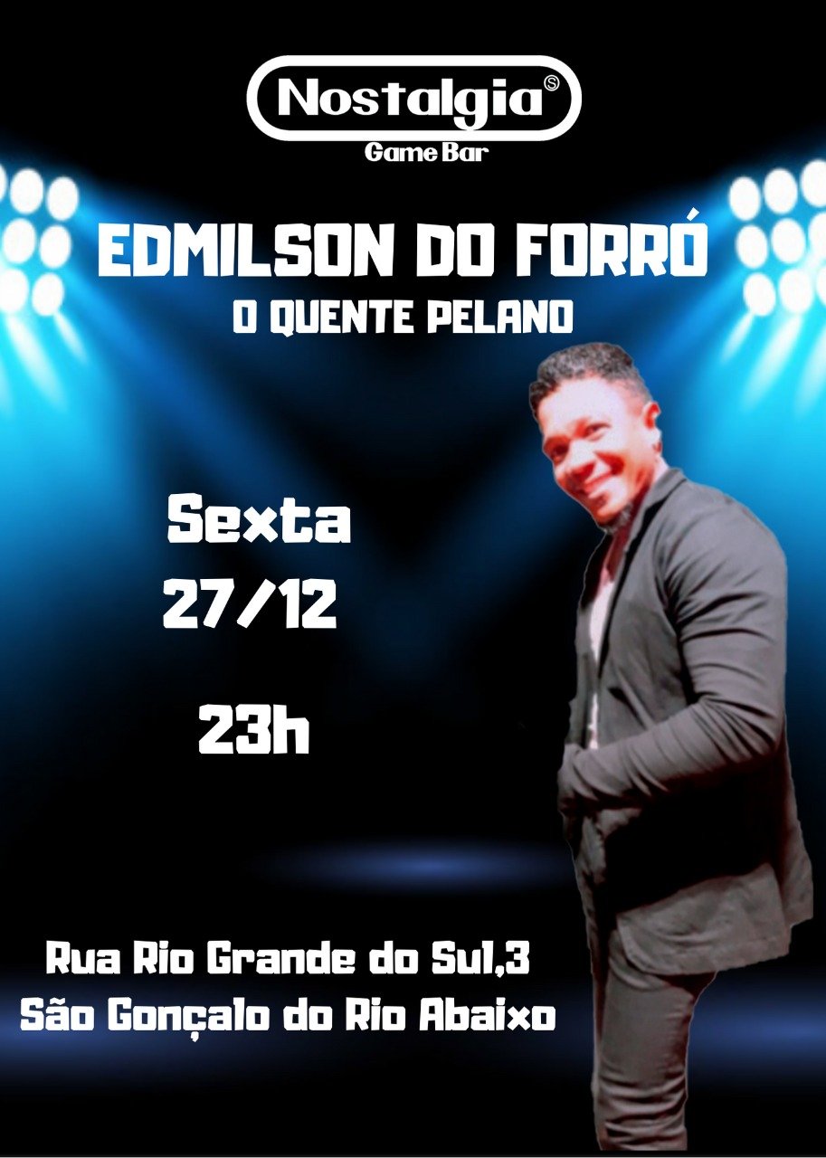 São Gonçalo 27/12 Nostalgia Game Bar apresenta o último forró do ano com Edmilson do forró, não percam pois essa festa vai bombarrrr …