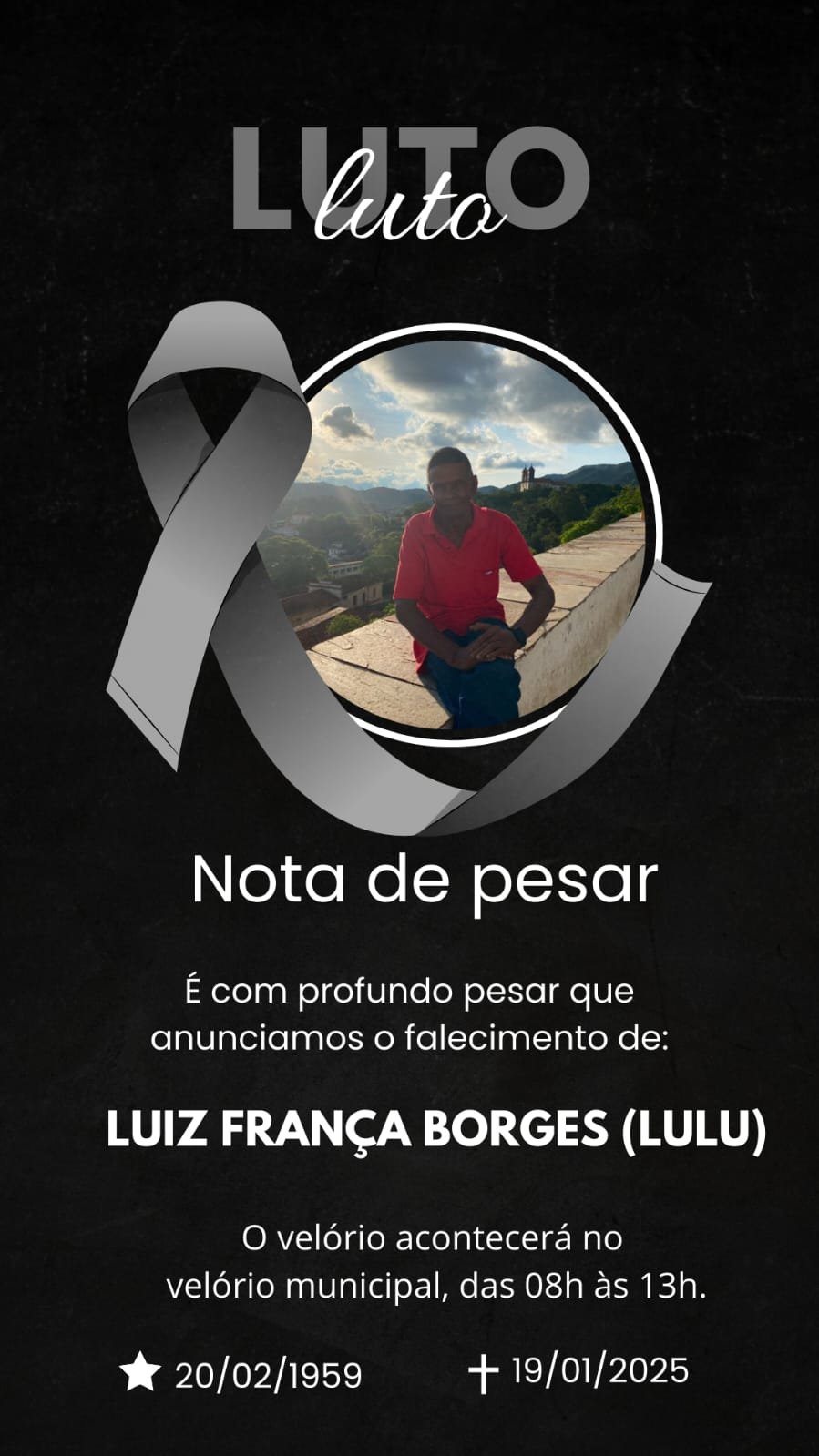 É com profundo sentimento de pesar que informamos o falecimento do nosso amigo Lulu Borges.
