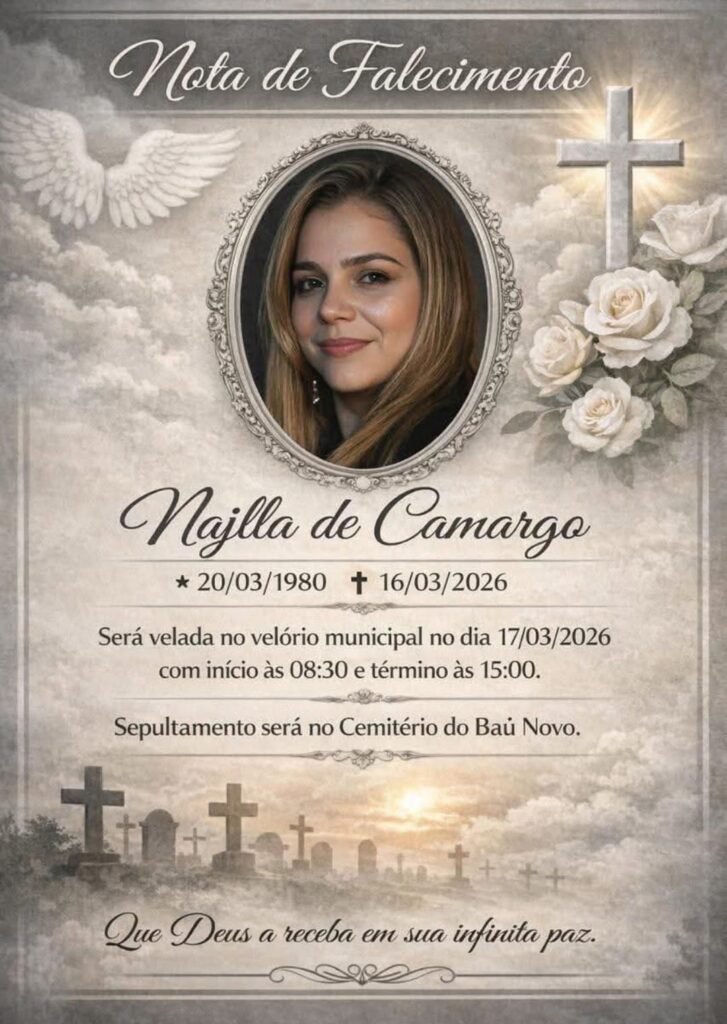 É com profundo sentimento de pesar, que informamos o falecimento de Nágila de Camargo aos 45 anos de idade.