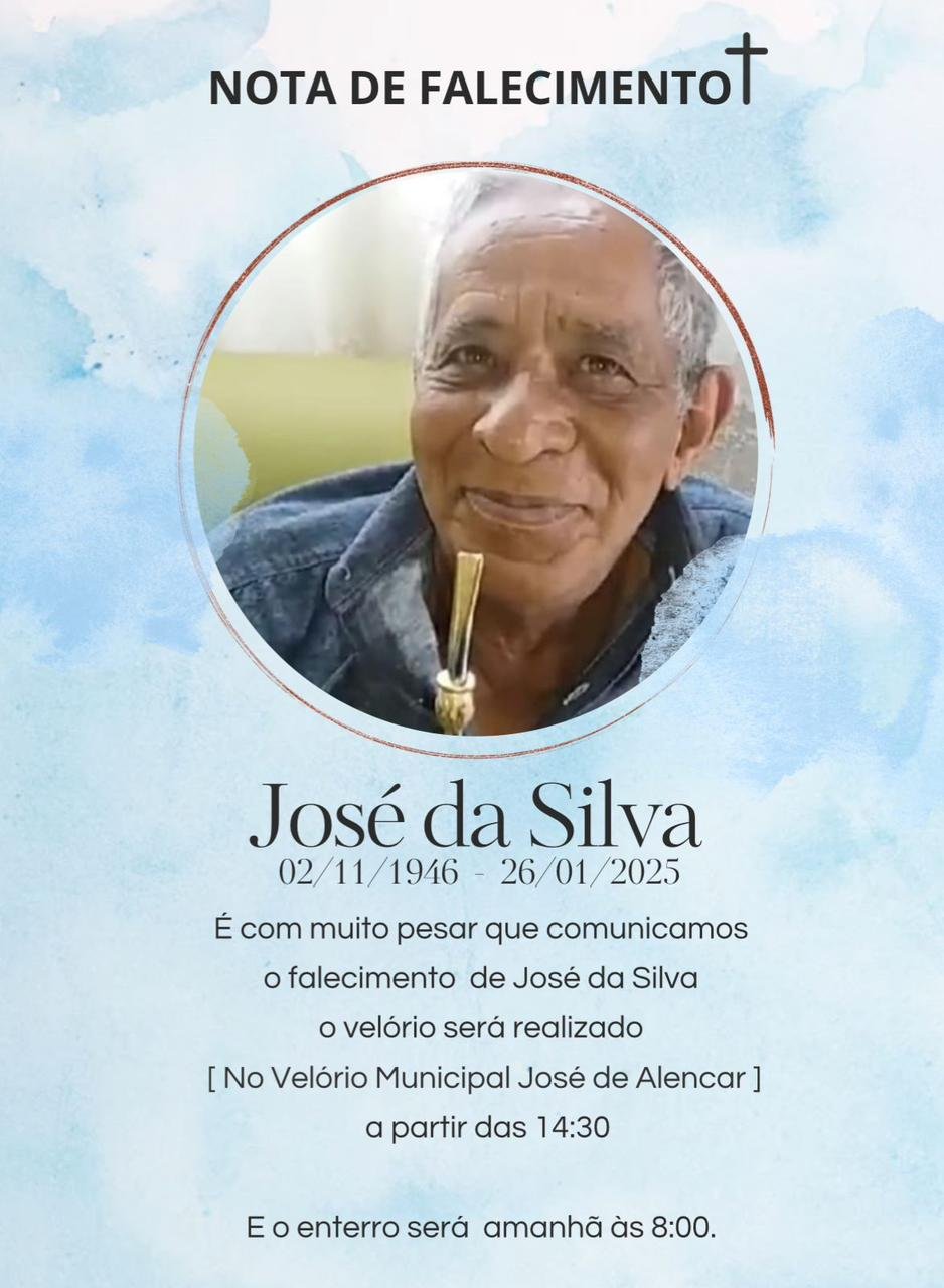 O corpo do senhor José da Silva começará a ser velado às 14 horas de hoje no velório municipal José de Alencar e será sepultado amanhã, segunda-feira (27), às 08 horas da manhã.