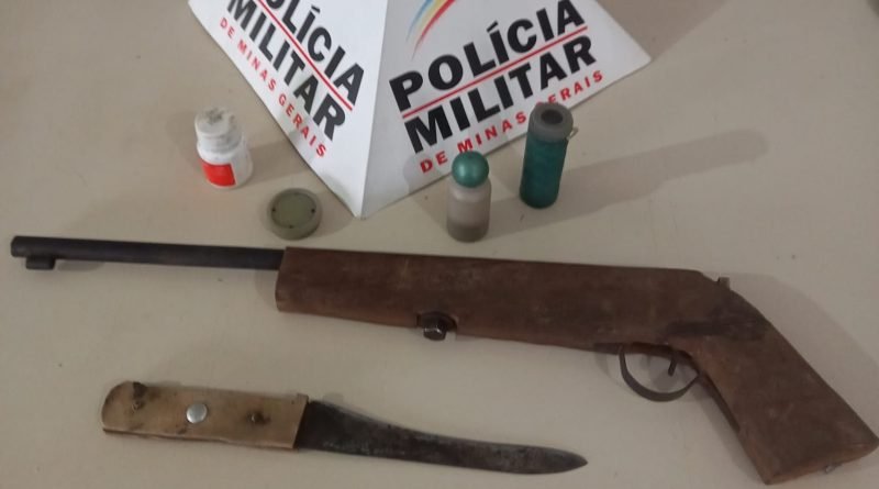 17ª CIA PM IND – Nova Era – Policiais Militares prende autor de ameaça e apreende arma de fogo e arma branca.