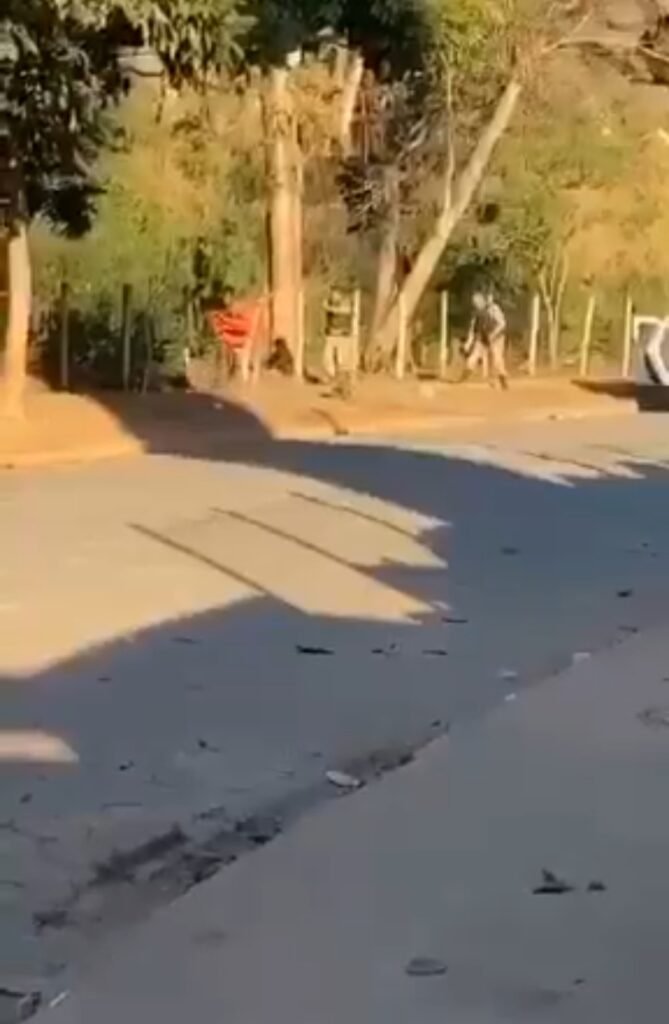 O vídeo para neste momento, mas recebemos informações que houve um disparo em direção da perna do homem que estava em fuga, mas o tiro não acertou no homem.
