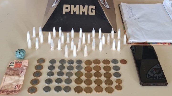 No interior do quarto do autor, dentro de uma bolsa, foi encontrada uma bucha de maconha, além de dinheiro fracionado e um caderno com anotações relacionadas à atividade ilícita. Também foi apreendido um aparelho celular.