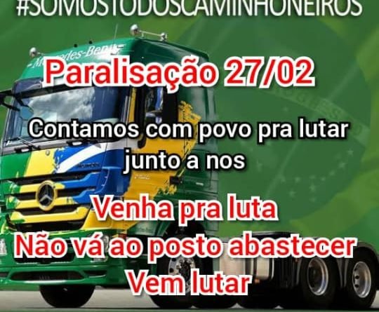Mais uma vez está sendo programada uma paralisação da classe de caminhoneiros de todo o Brasil a partir de amanhã 27/02/2020.