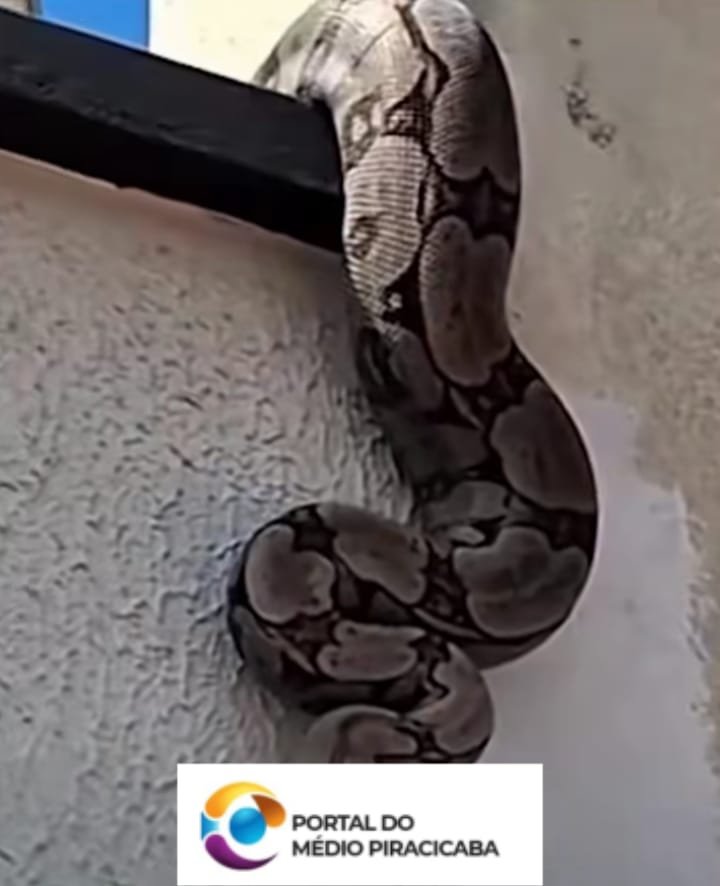 Onde uma moradora do Setor Atlântico, em Inhumas, levou um grande susto ao se deparar com essa enorme cobra no muro da sua residência.
