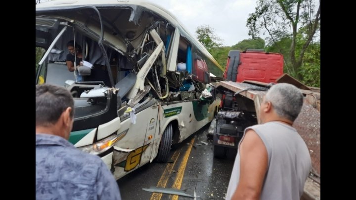 Tudo garrado próximo ao trevo, segundo informações o ônibus da Viação Gontijo perdeu p controle e acabou batendo lateralmente contra uma carreta que puxa maquinas.