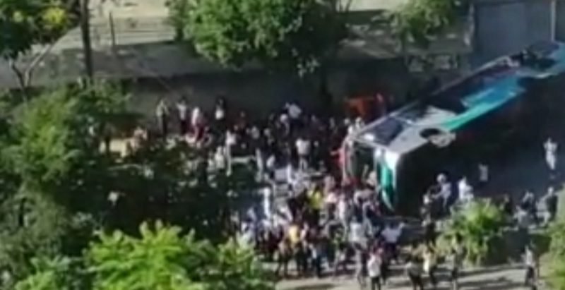 Ônibus tomba agora a pouco na estação Vilarinho