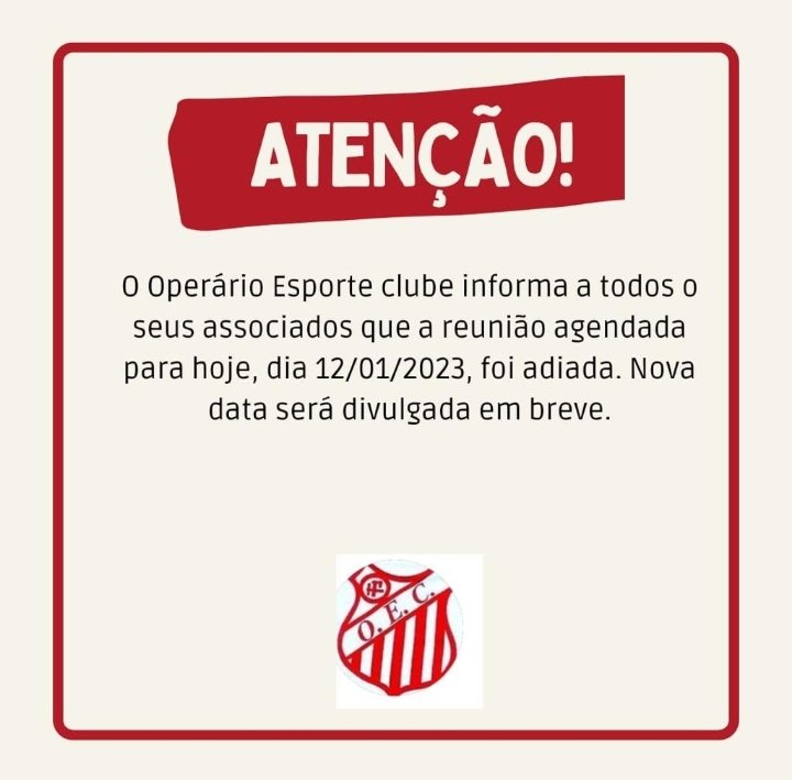 OPERÁRIO ESPORTE CLUBE INFORMA: