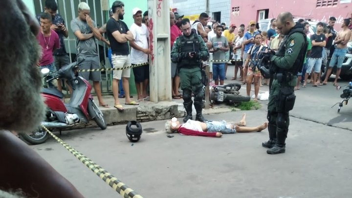 A dupla foi localizada no bairro Romeirão, esquina das ruas Joaquim da Rocha com Maceió, os meliantes bateam em outra motocicleta, cairam no solo e começaram a trocar tiros com a Polícia Militar.