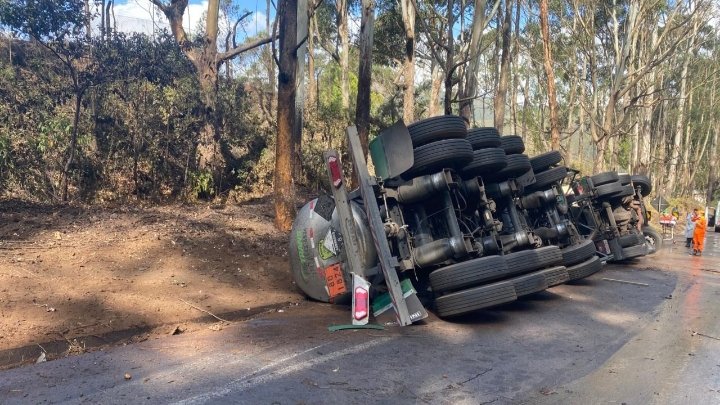 Ouro Preto/Mariana: Capotamento de carreta que transportava soda cáustica líquida na BR-356, na altura do KM 95