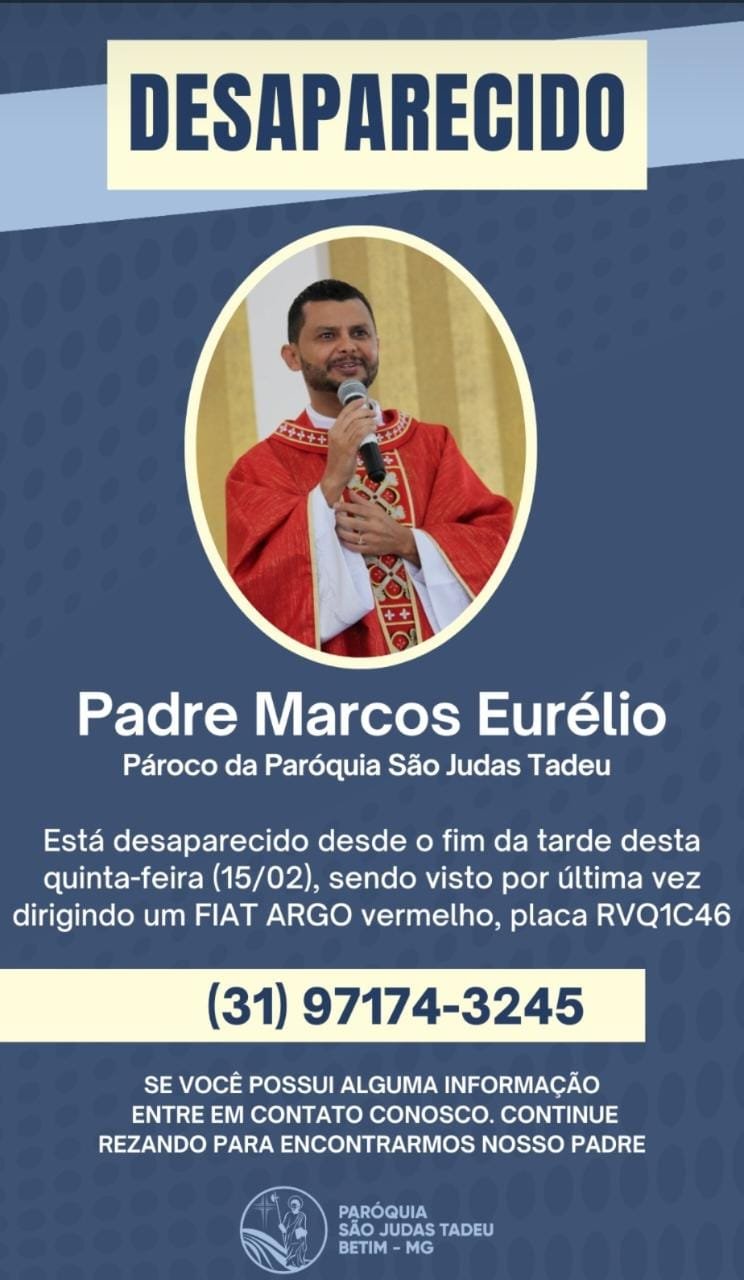 Geral PADRE MARCOS AURÉLIO ESTÁ DESAPARECIDO (#COMPARTILHE) 16 de fevereiro de 2023 portaldomediopiracicaba@gmail.com Redação