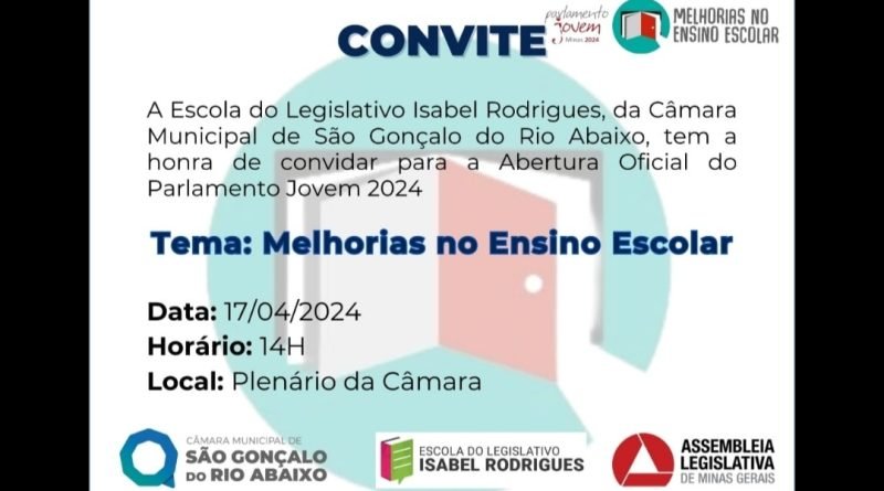 Participe do Lançamento Oficial do Parlamento Jovem 2024 da Câmara Municipal de São Gonçalo do Rio Abaixo