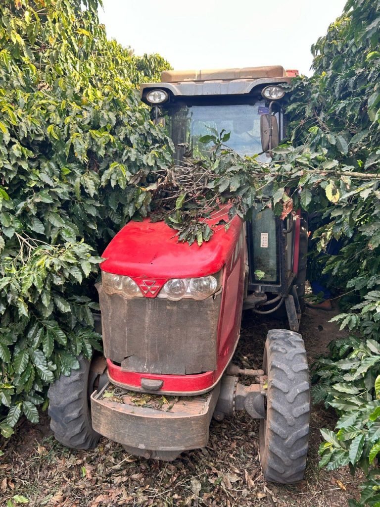 Um homem de 60 anos de idade, proprietário da fazenda, estava trabalhando em uma colhedeira de café.