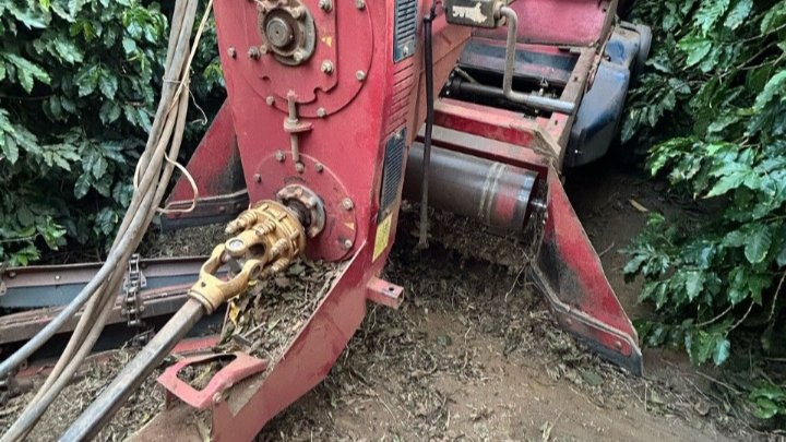 Um homem de 60 anos de idade, proprietário da fazenda, estava trabalhando em uma colhedeira de café.