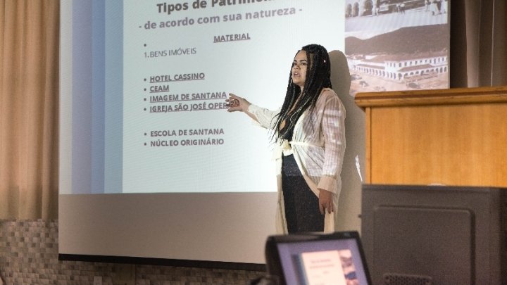 Na tarde de segunda-feira (30), a Gestora Pública de Cultura, Patrimônio e Turismo e Presidente do Conselho Municipal do Patrimônio Cultural, Nadja Lírio Furtado, foi quem abordou o tema Patrimônio – de Jean a João. Com foco nos bens tombados e inventariados do município, ela destacou a relevância da proteção patrimonial e cultural. Ela também frisou sobre a importância das legislações pertinentes à questão. “Temos três meios de preservação do patrimônio: lei orgânica, conselho municipal de patrimônio histórico e inventário dos bens”, explicou.