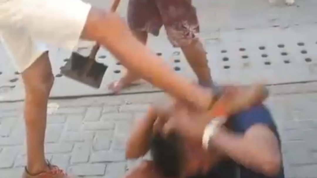 O homem que estava gravando a cena dizendo que o suspeito caído tinha roubado dele, enquanto isso outro cara descia pazadas no elemento, principalmente na cabeça e o barulho era intenso pahhhhhhhh puhhhhhhh pahhhhhhhh e o meliante resistindo bem as pazadas.