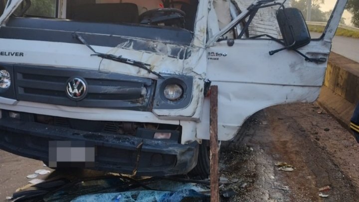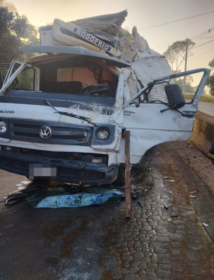 Poços de Caldas: caminhão bateu contra mureta e motorista ficou preso às ferragens na manhã de hoje