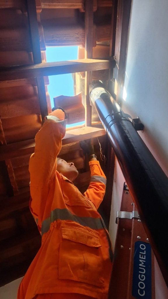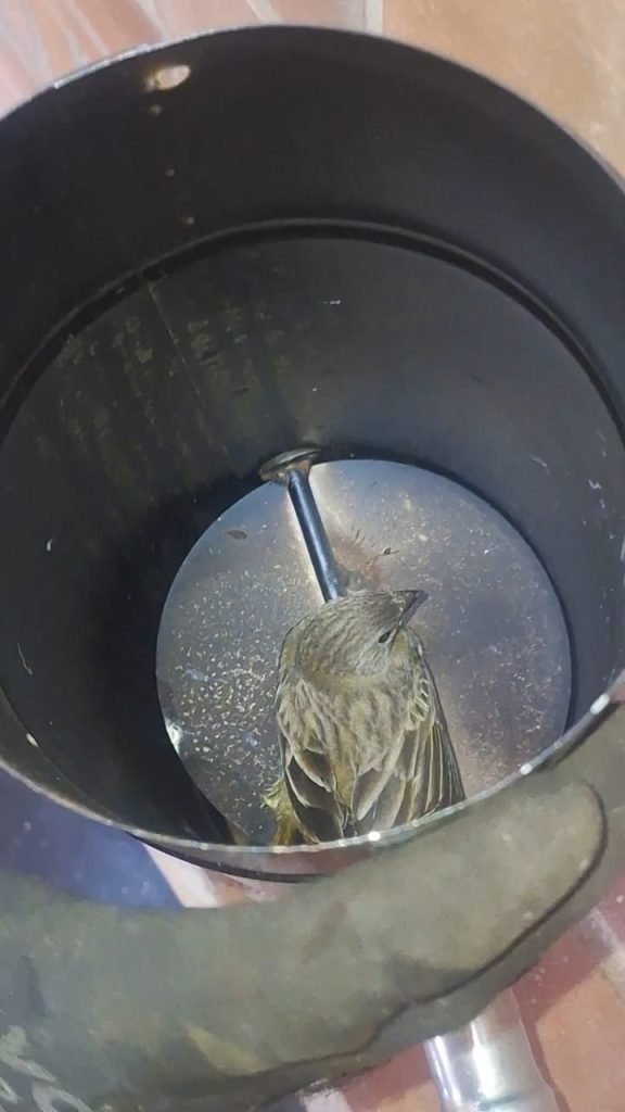 Na tarde desta quinta-feira (6), o Corpo de Bombeiros de Poços de Caldas foi acionado para atender a uma ocorrência de salvamento de um pardal que estava preso no interior de um duto de chaminé de fogão a lenha, com aproximadamente 4 metros de altura.