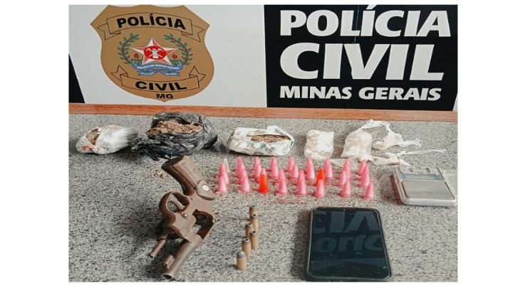 Polícia Civil apreende drogas, arma de fogo e prende traficante em Itabira MG