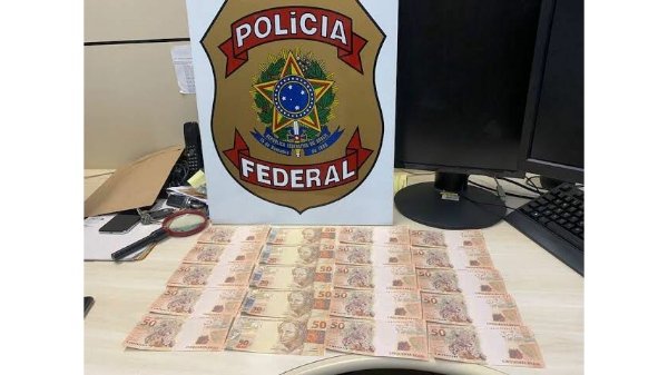 A PF apreendeu as vintes cédulas falsas de 50 reais, que tinham características semelhantes às notas verdadeiras, incluindo a simulação dos itens de segurança, mas repetiam o mesmo número de série, impossível de ocorrer com uma nota verdadeira.