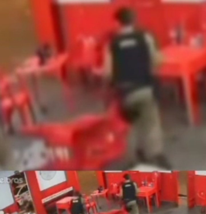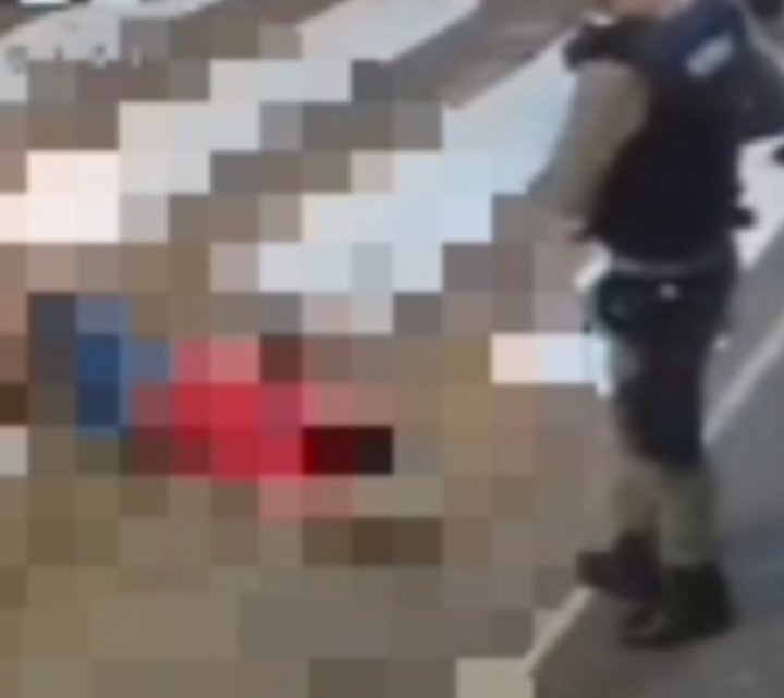 As imagens das câmeras de segurança mostram que o suspeito estava transtornado.