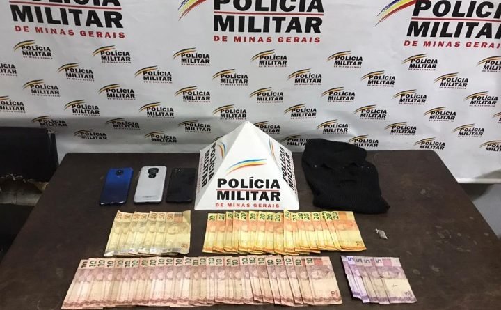 Ainda em fuga e na perseguição os militares apreenderam um dos autores, um menor de 17 anos, que estava escondido em uma caixa d’água de uma residência com o dinheiro subtraído a quantia de R$ 1.001,45, (um mil e um real e quarenta e cinco centavos), três celulares, uma bucha de maconha e uma touca ninja preta.