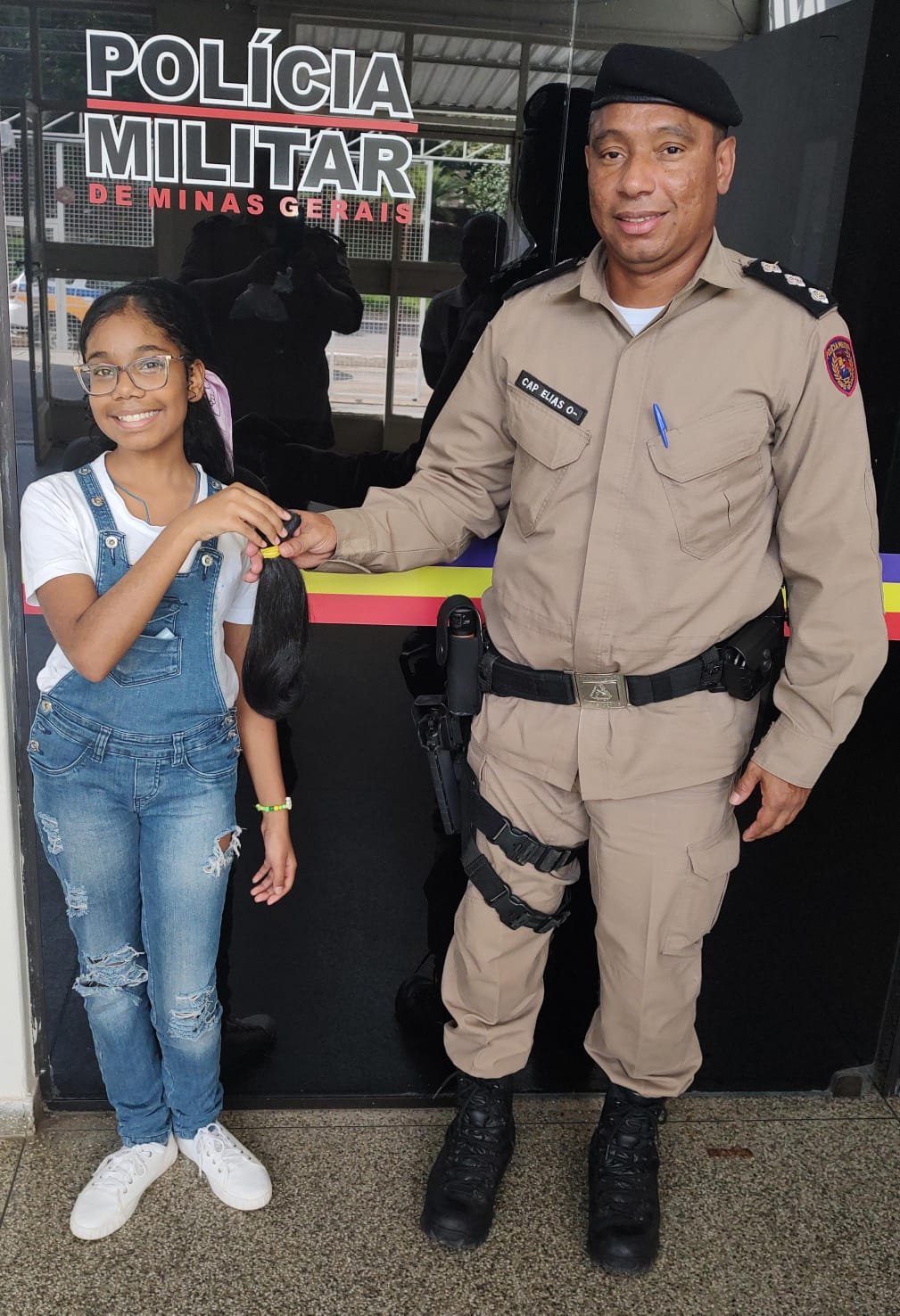 Nesta data, compareceu ao Quartel da PM de João Monlevade, a criança Maria Eduarda, residente no bairro Metalúrgico, em João Monlevade, a qual fez a entrega de uma “mecha” de cabelo para produzir perucas para doação.