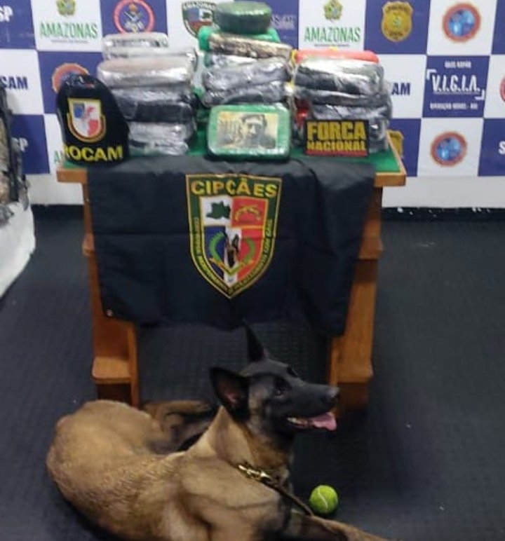 Durante uma abordagem a uma embarcação em GM Oliveira, no dia 02 de agosto as 00:30 horas o cão Havana localizou no convés principal da embarcação essa quantidade de droga aprendida.