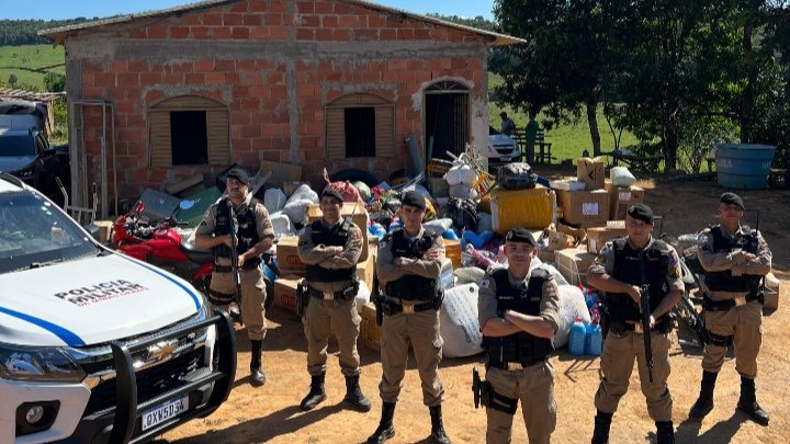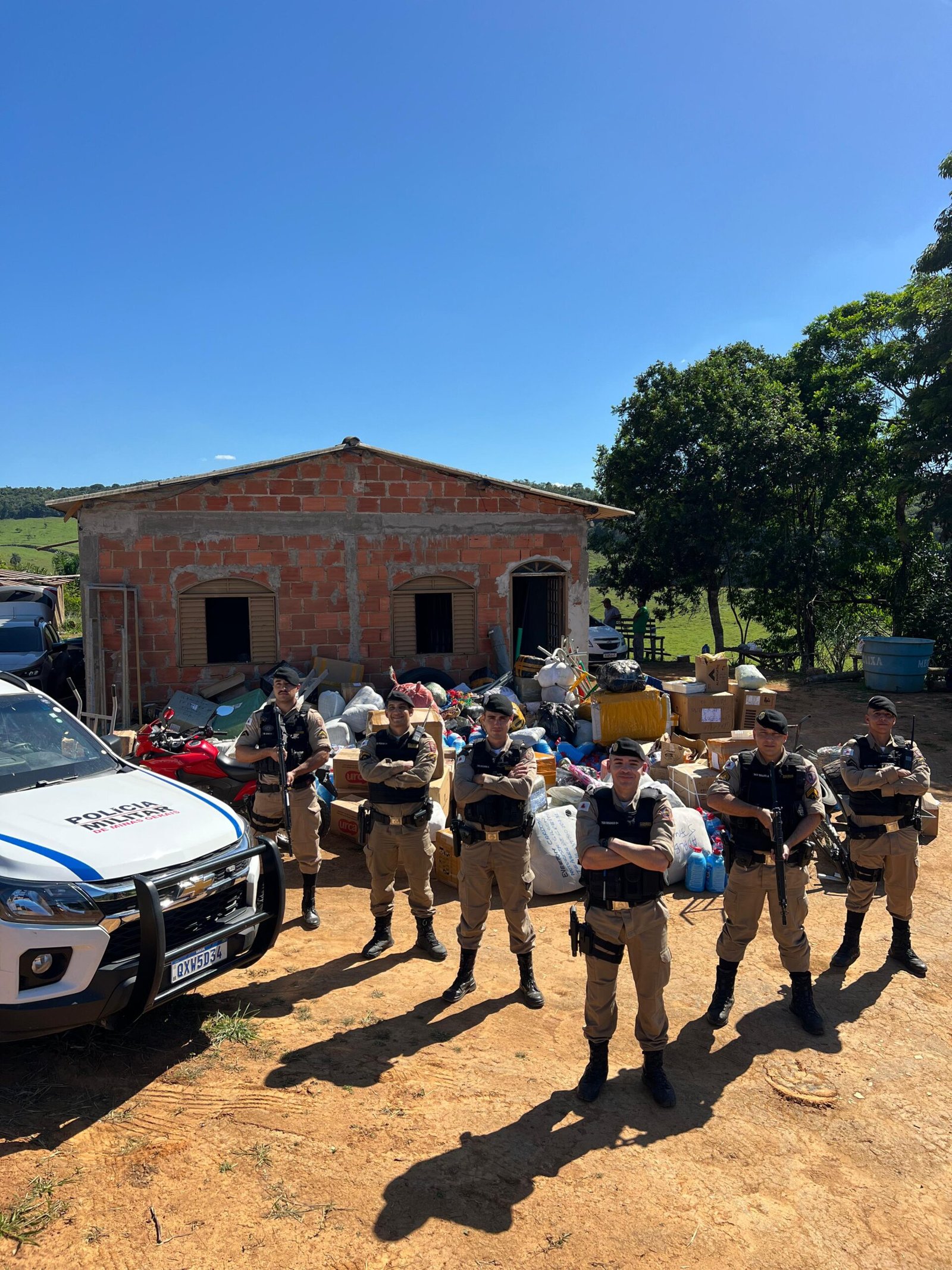 As equipes da Polícia Militar deslocaram-se até o local, onde obtiveram êxito em localizar diversos itens, incluindo uma motocicleta XRE 2022, furtada em data anterior, a qual já se encontrava com outra pintura e sem placa de identificação.
