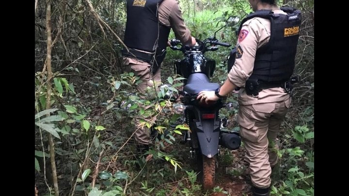 Após receber denúncias anônimas de que a motocicleta roubada no dia 24/11 estaria na estrada de Costa Lacerda de imediato militares deslocaram ao local e após busca minuciosa pela mata a motocicleta foi encontrada pelos militares.