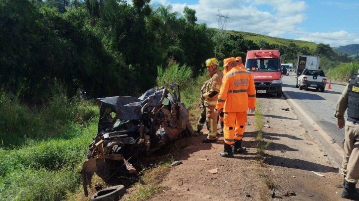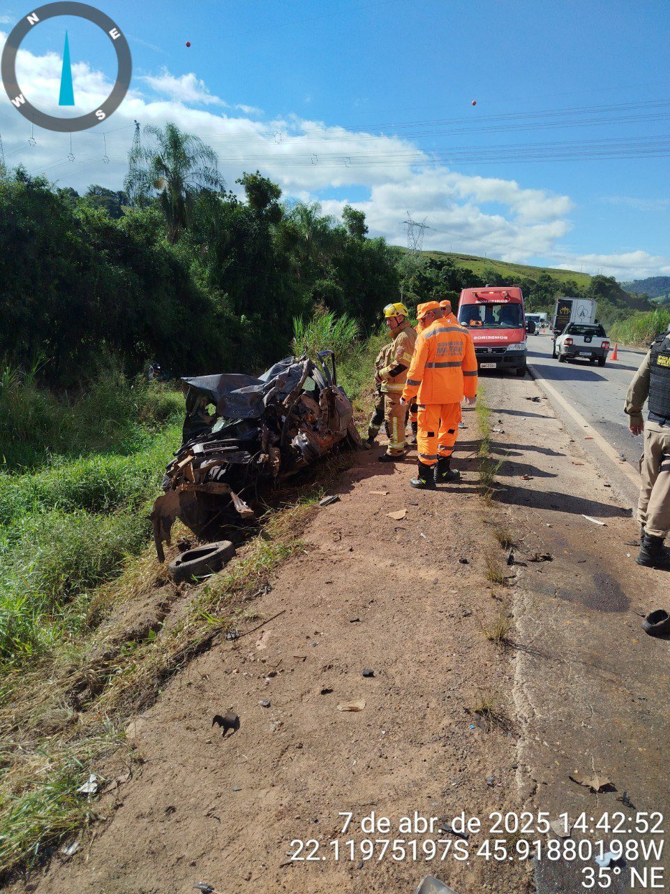 Pouso Alegre: acidente gravíssimo entre veículo e caminhão deixou uma vítima fatal e a outra foi socorrida em estado grave