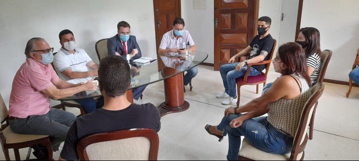 A reunião ocorreu no gabinete e contou com a participação do procurador geral do município, Hugo Martins, do chefe de gabinete, Geraldo Giovane Silva, do assessor de comunicação, Geraldo Magela “Dindão” Gonçalves e o líder do governo na Câmara, vereador Belmar Diniz (PT)