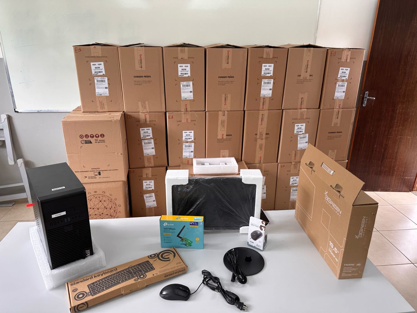 Todas as escolas da rede e secretaria serão contempladas com os equipamentos conforme suas necessidades.