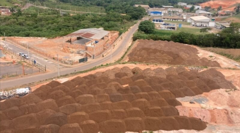 Área de armazenamento do material retirado do rio, no Distrito Industrial.