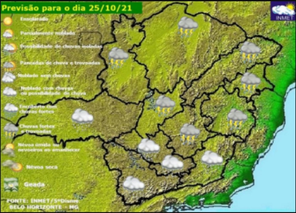 Previsão de tempo MG segunda 25/10/2021