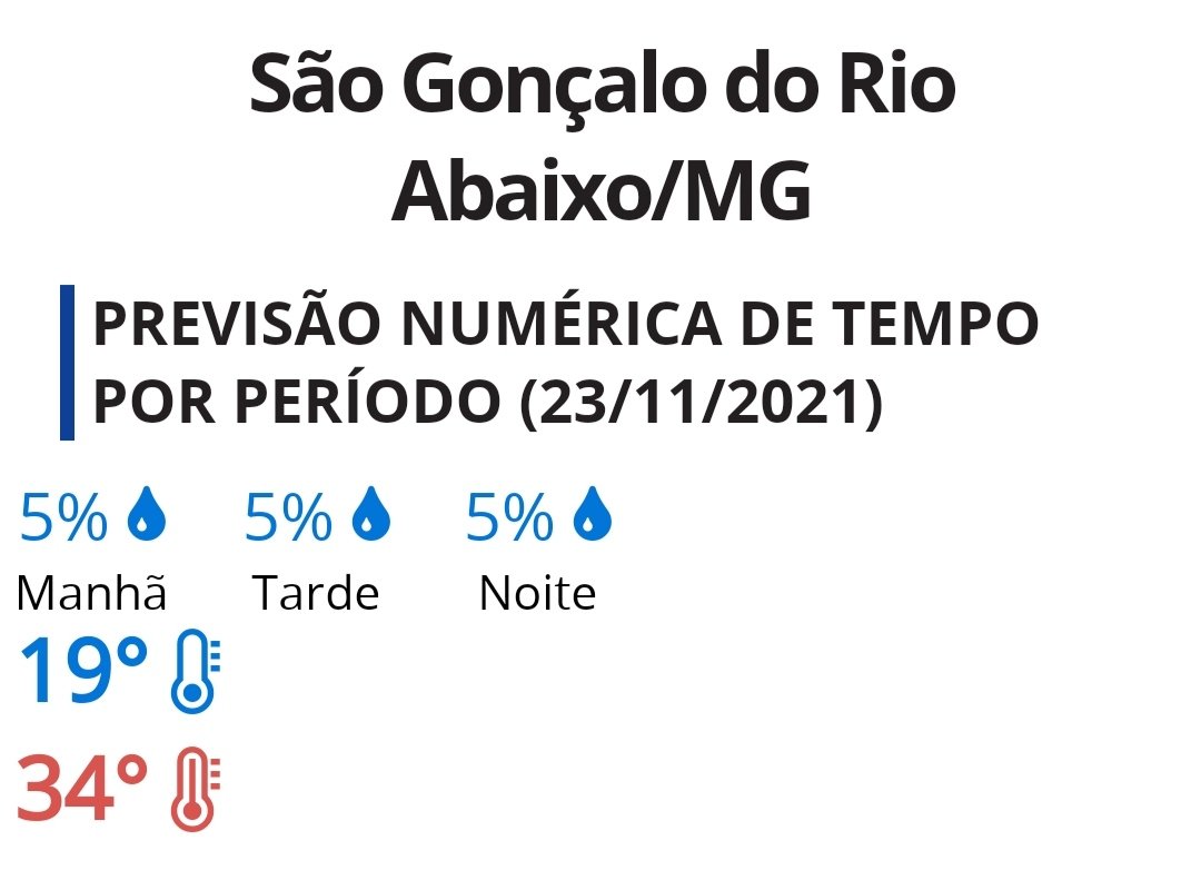 Previsão de tempo São Gonçalo do Rio Abaixo 23/11/2021