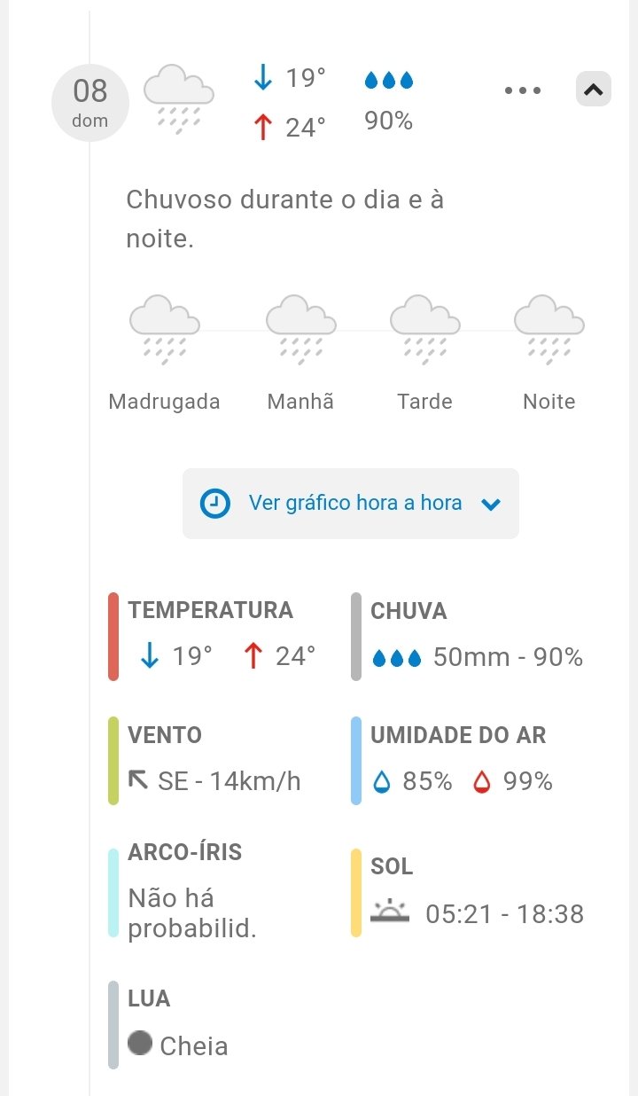 Está previsto para chover hoje 50 mm e partir de amanhã cair, mas não podemos confiar pois a previsão do tempo na maioria das vezes acerta, más também as vezes erra.