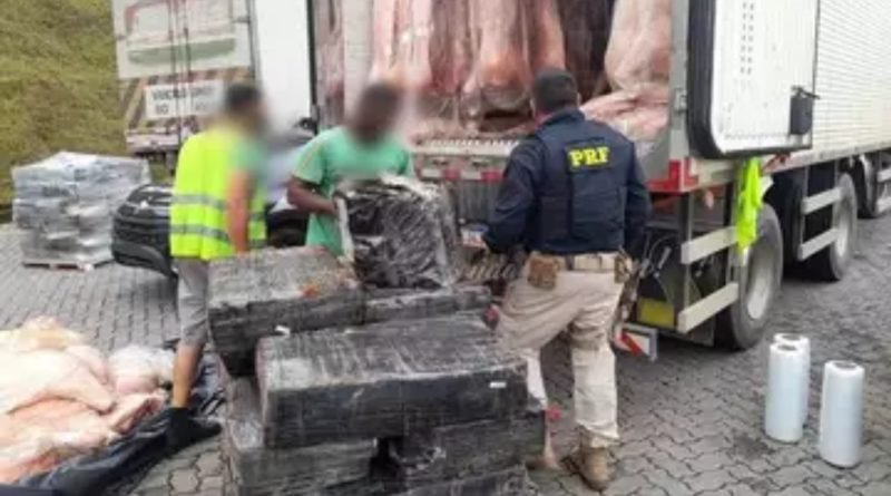 A Polícia Rodoviária Federal suspeitou de dois caminhões baú que estavam com placas clonadas. O fato aconteceu em Juiz de Fora. Um dos caminhões estava carregado com carne de porco e no meio a droga escondida e no outro estava escondida num fundo falso da carroceria do caminhão que estava carregado com bebidas.