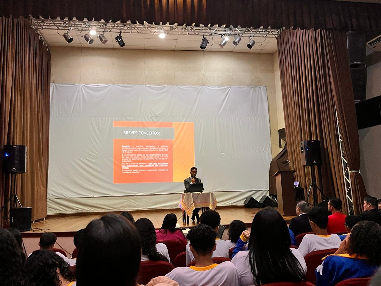 O promotor mostrou números alarmantes de registros de abuso no país e informou que 68% desses abusos acontecem no ambiente familiar, ou seja, o abusador costuma ser um parente ou amigo. Falou da importância de denunciar, ouvir e proteger nossas crianças e adolescentes. Ele ainda interagiu com os adolescentes presentes e profissionais da área de saúde que fizeram uma série de perguntas ao final da palestra.