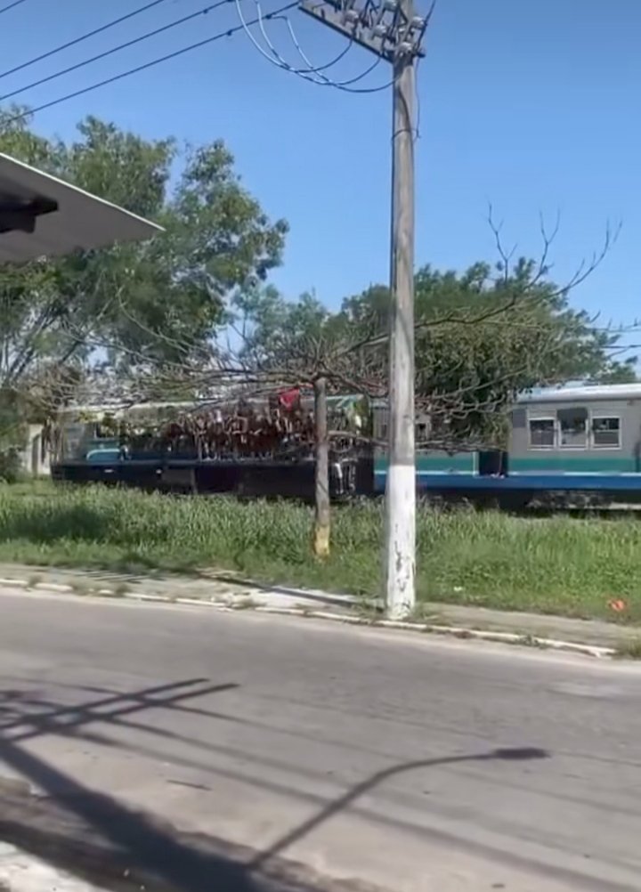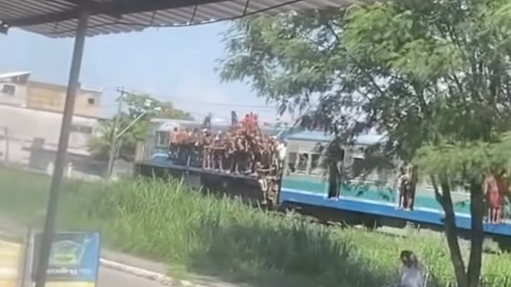 Que cena maravilhosa, um trem lotado de clandestinos. Você acha que isso é na Índia? Está enganado é no Brasil