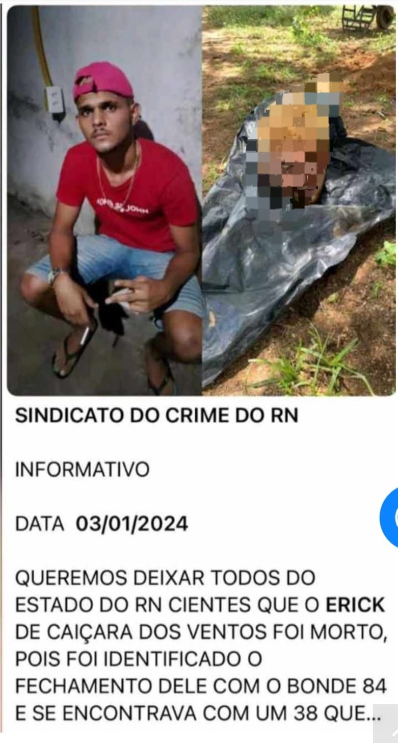 Rio Grande do Norte, primeiro a facção mata, depois degola e manda recado nas redes sociais